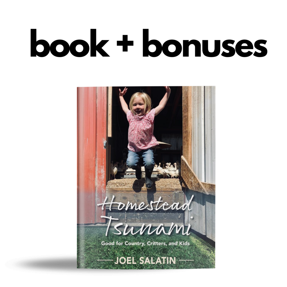 • Attend a live book club meeting with Joel Salatin and Justin Rhodes on January 30, 2024 ay 6pm EST